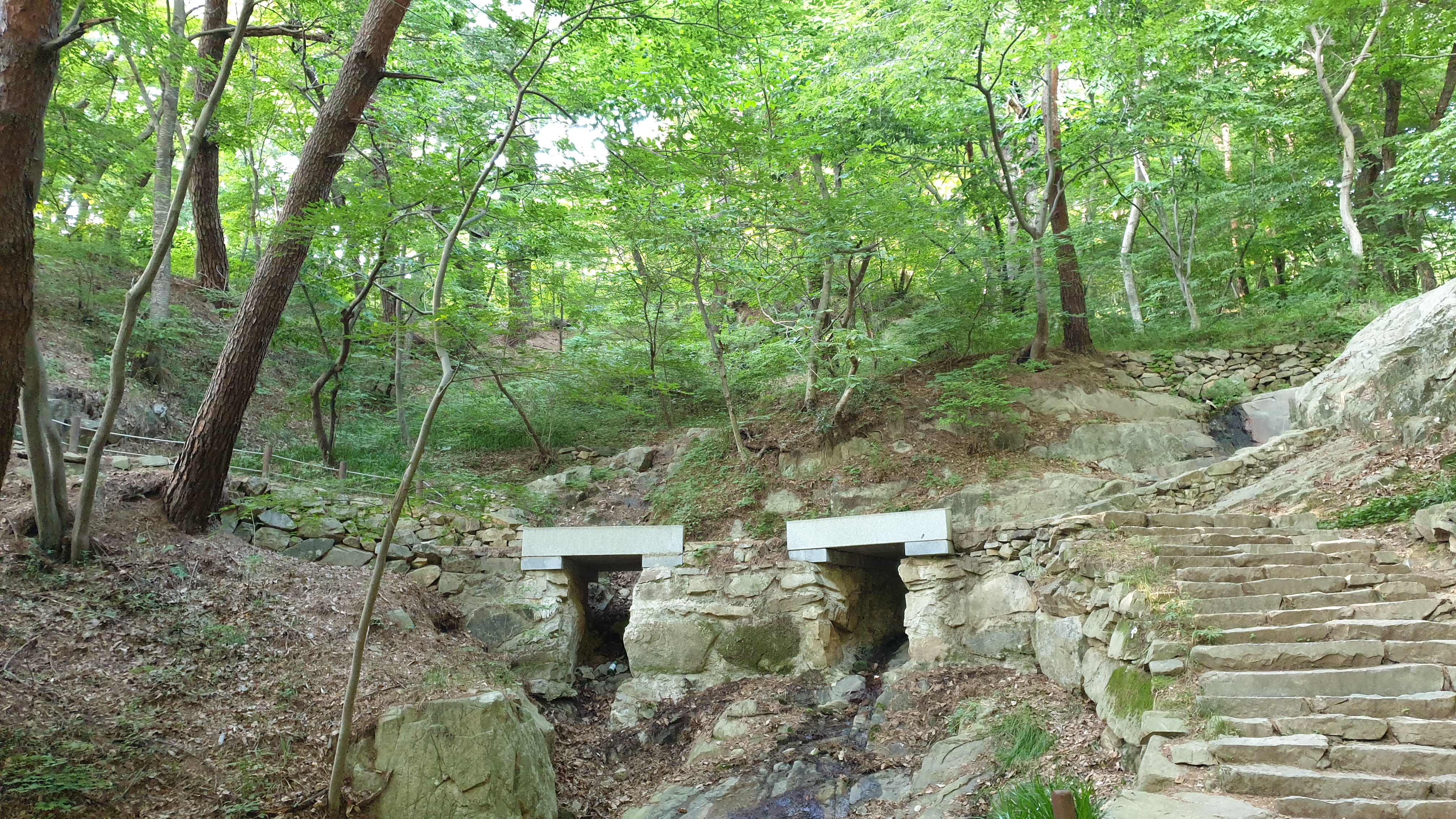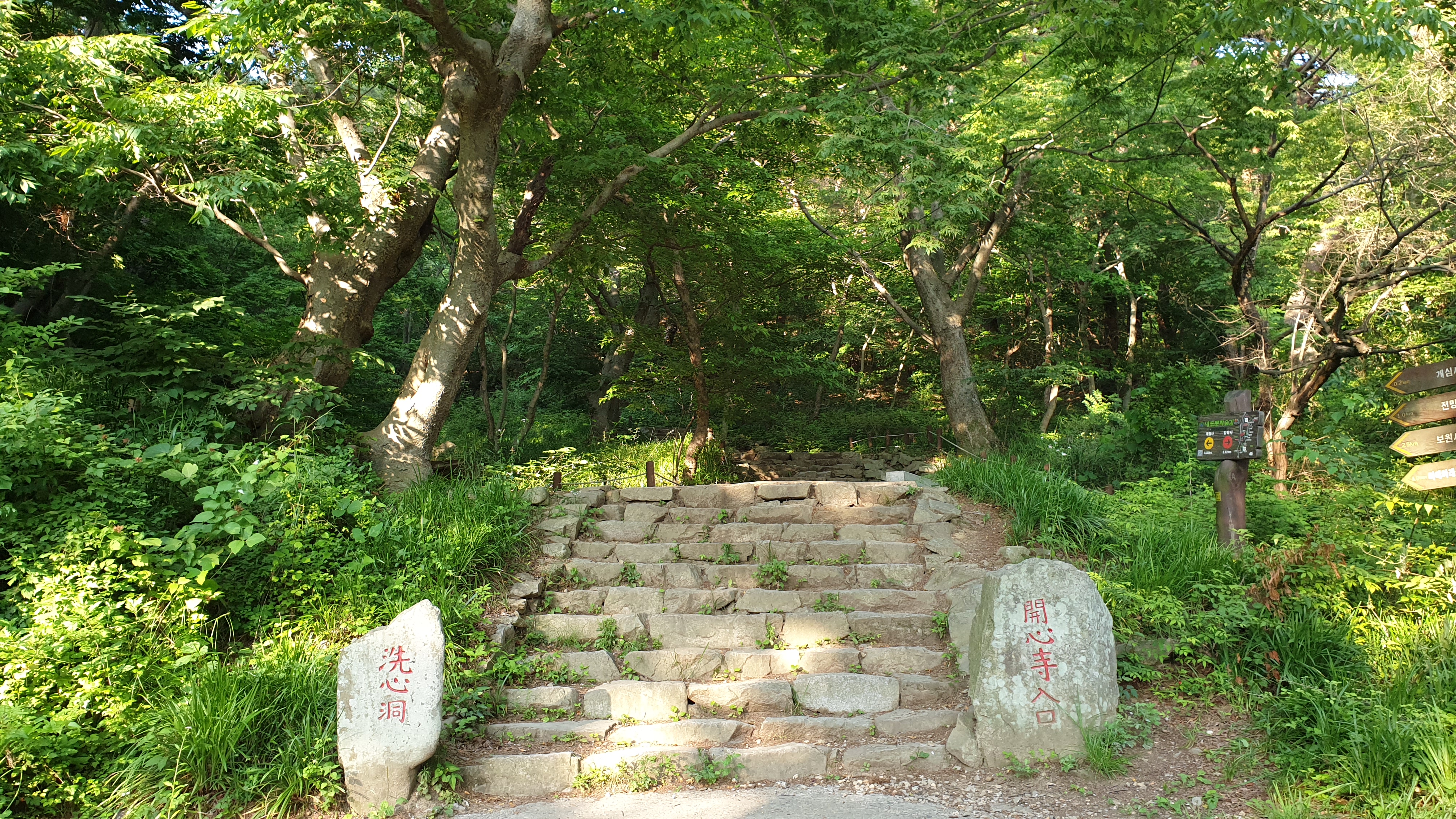 세심동과 개심사 입구가 표기된 이곳에서부터는 숲속의 계단길이 펼쳐진다.