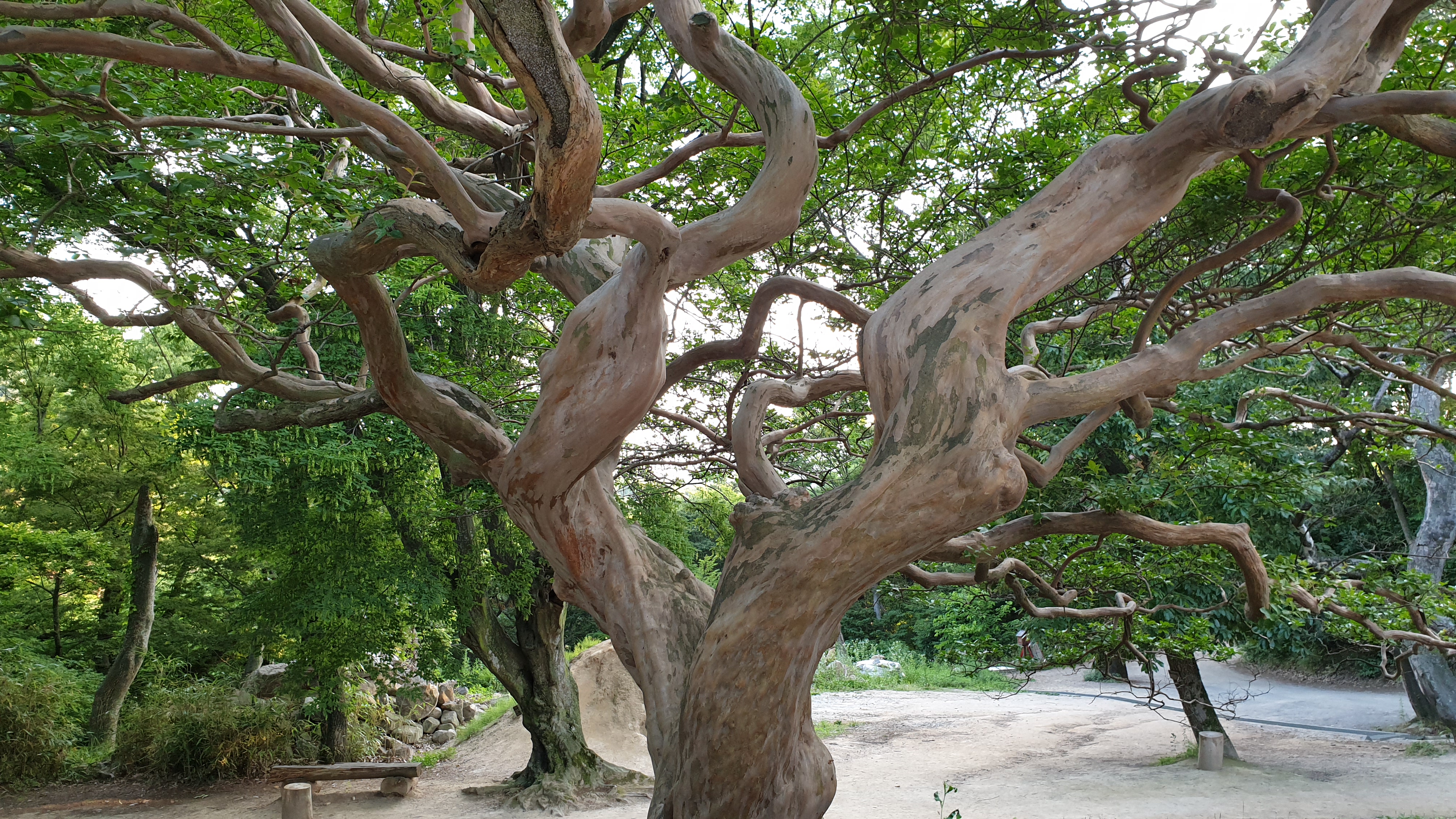 연지가 있고, 150살 정도 되어 예술작품 못지않게 아름다운 배롱나무에 이르면 개심사의 범종각과 안양루가 보이며, 연지 옆에는 산삼이 꽃을 피웠다.